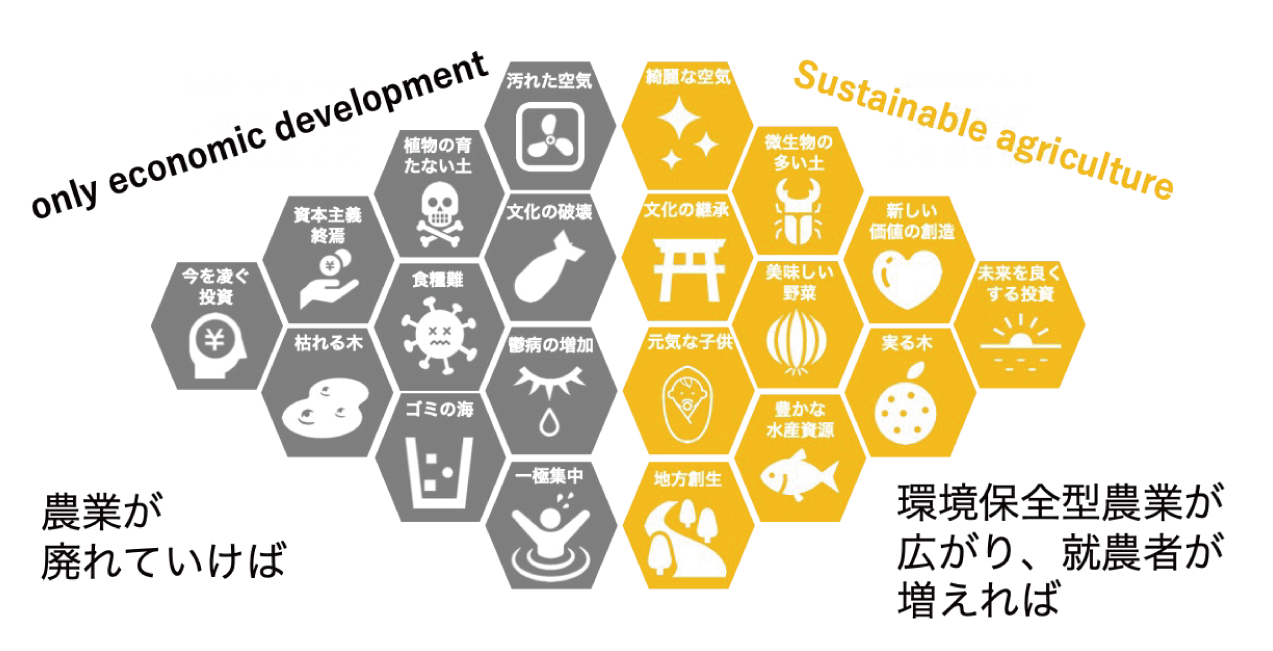 人類が直面する最大の試練であると言える課題の解決の糸口が わたしたちの命の循環の中にある営みである「農」にあると確信しつつも、私が農業をスタートした年から10年間で120万人も減少しており、2040年には約35万人にまで減少するとの推計もあります。
